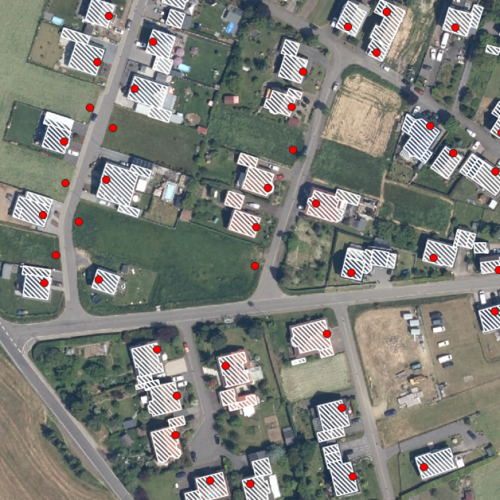 - Einzelhausdarstellung insbesondere für große Kartenmaßstäbe, alternativ auch in Kombination mit den Hauskoordinaten.
